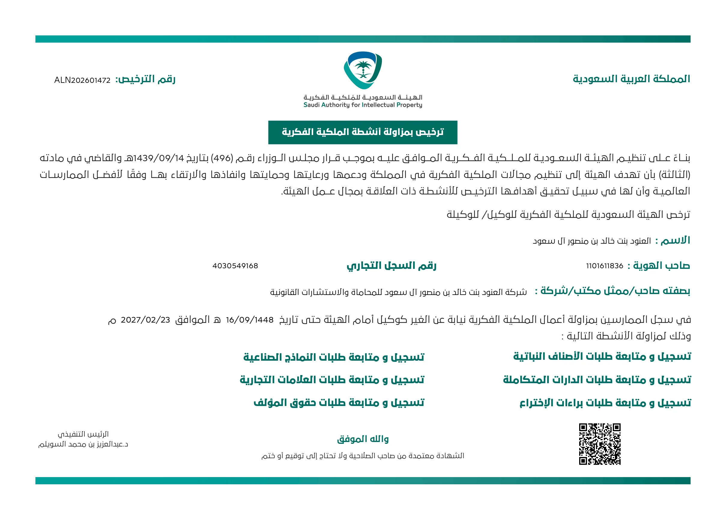 منذ تأسيس مكتبها، عملت الأميرة العنود على بناء بيئة قانونية احترافية قائمة على الثقة والشفافية والتميز في تقديم الخدمات، مع التزام راسخ بقيم العدالة وحماية الحقوق. وتؤمن بأن القانون ليس مجرد وسيلة لحل النزاعات، بل هو ركيزة أساسية لتحقيق الاستقرار وتمكين الأفراد والمنشآت نحو مستقبل أكثر وضوحًا واستدامة.